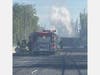 The driver of the Nissan Rogue, a 48-year-old woman of Hightstown, was injured and transported to Robert Wood Johnson University Hospital. The truck driver, a 24-year-old man from Staten Island, in an attempt to avoid the collision, swerved, overturned, and lost its load on the roadway; the truck then caught on fire.