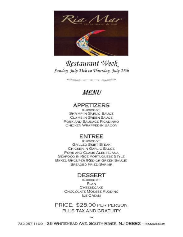 Ria Mar Restaurant and Bar (see their 2017 Restaurant Week menu below)