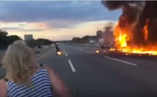WATCH: Woman Helps Victim Whose Leg Caught Fire in N.J. Turnpike Explosion