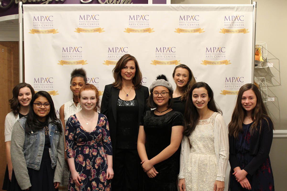 Image via MPAC Staff. Front row (L-R) Natalie Paitchel, Molly McCarthy, Nicole Narvaez, Ava Chrusciel, Sinclair Stevens. Back Row: Caroline Nieto, Nofia Jarbo, Linda Eder (performer), Grace Sittig.