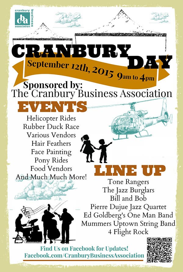 Come see what’s new on Cranbury Day - meet the new businesses, get a birds-eye view on the newly added helicopter ride, and decorate the street in this year’s chalk drawing competition. It’s all fun, all day - a great way to close out your summer!