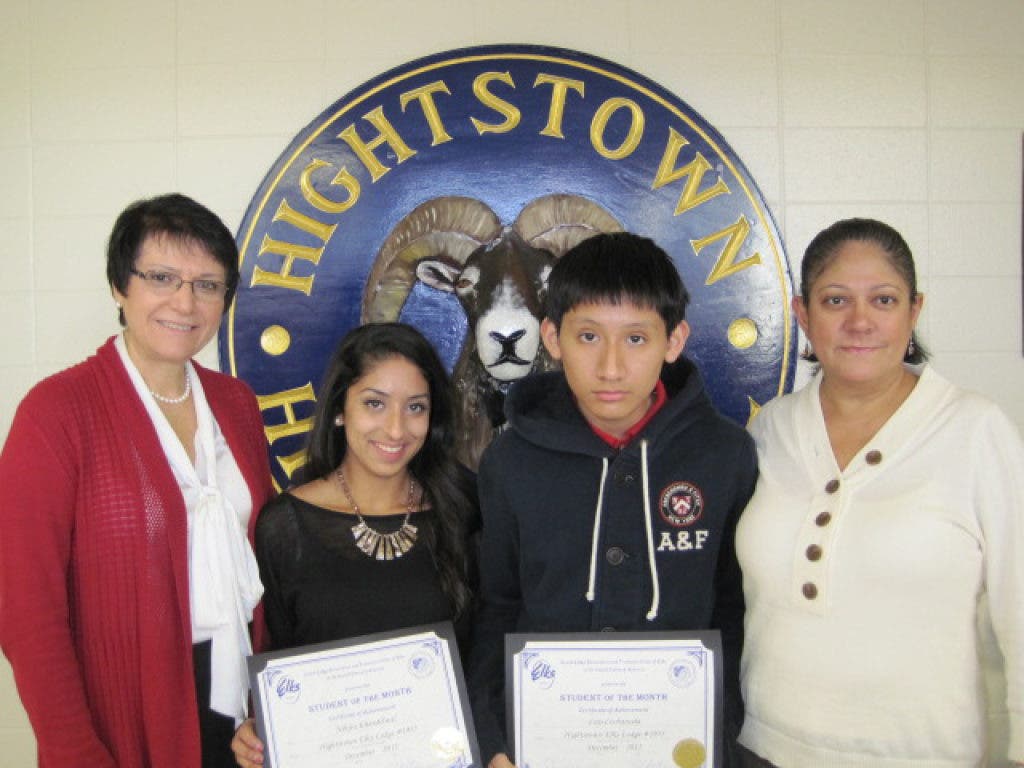 Hightstown High School students Nikita Khandelwal, Luis Cochancela, and Fernando Rodas were named Elks Students of the Month for December, 2012.