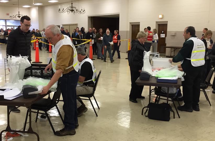 The attached image was provided by Mercer County officials: “Medication” is distributed to volunteers representing community residents during an exercise conducted by health departments from Mercer, Hunterdon and Somerset counties on March 24 at the West Trenton Firehouse in Ewing.