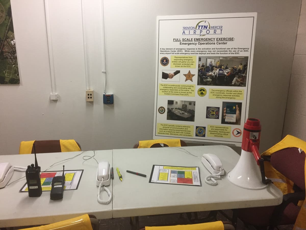 In accordance with the Airport Emergency Plan, agencies such as the National Transportation Safety Board, the Federal Aviation Administration, the FBI, the New Jersey Division of Aeronautics, the County Office of Emergency Management and County Emergency Communications were contacted and their designated representatives were requested to report to Trenton-Mercer.