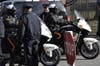 They all watched for the top of the hill in the cemetery, where three police officers in day-glo yellow jackets patrolled the area near the gravesite.