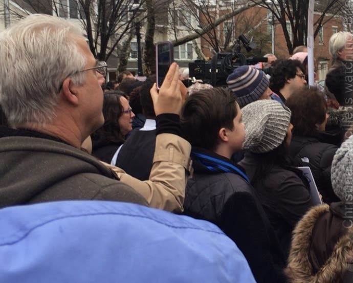 Hundreds prayed at the First Presbyterian Church of Metuchen on Sunday and then took to the streets to protest ICE's arrests of two Indonesian nationals (see photos and videos below). Both, including Roby Sanger of Metuchen, a member of the church, were arrested after dropping their children off at school this week.