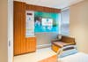 “The mission of this multi-phase modernization project is to reduce the stark clinical feel of older patient rooms into a warm, hospitable environment,” says Pasquale Avallone, healthcare manager of RSC Architects. “We used a modular manufactured construction method on the headwalls and footwalls of the rooms so we could embed the necessary technology, like medical gas outlets. We made sure our design allows for flexibility to update systems with new innovations in the field.”