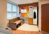 Twenty-two double- and single-occupant rooms were converted to 20 single-occupant rooms. Nursing supplies are located just outside each room, cutting down on noise and interruptions. Glass now covers each room's 40-inch television, clocks and other wall accents to help reduce the spread of infections. Patients can control the level of LED lights in their rooms. Couches convert to beds so family members can more easily stay with patients.