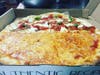 Baked ziti pizza with garlic knot crust, a fresh fruit platter, and a more-traditional pizza the restaurant makes.