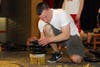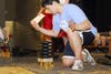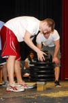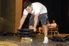 Fair Lawn High School geometry students enjoy building bridges out of pasta, but watching them smash is even more fun. The bridges are built using only Elmer's glue and can not weigh more than 12 ounces. If the bridge is built correctly, it can withstand over 700 pounds. On stage this past Friday, seniors from the wrestling and football teams gently put weights on top of each bridge until it smashed, while students watched from the audience.