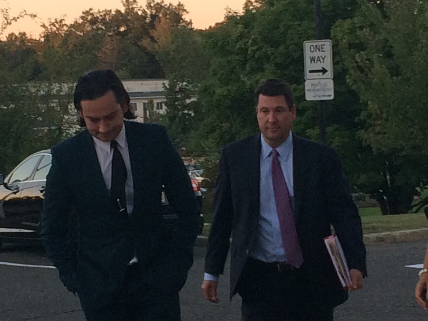(Pictured: Constantine Maroulis, left, and his lawyer, John Hogan, arrive at Wyckoff Municipal Court)