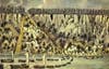 Slowly, early white settlers displaced the Native Americans. Dutch farmhouses replaced the tents, and soon settlements appeared atop the ridge of the cliffs. Eventually, prior to the American Revolution, Etienne Burdett, a Manhattan merchant, built his home in a gorge intersecting the Palisades below Fort Lee Bluff, the present day site of the Fort Lee Historic Park and the Edgewater Colony.