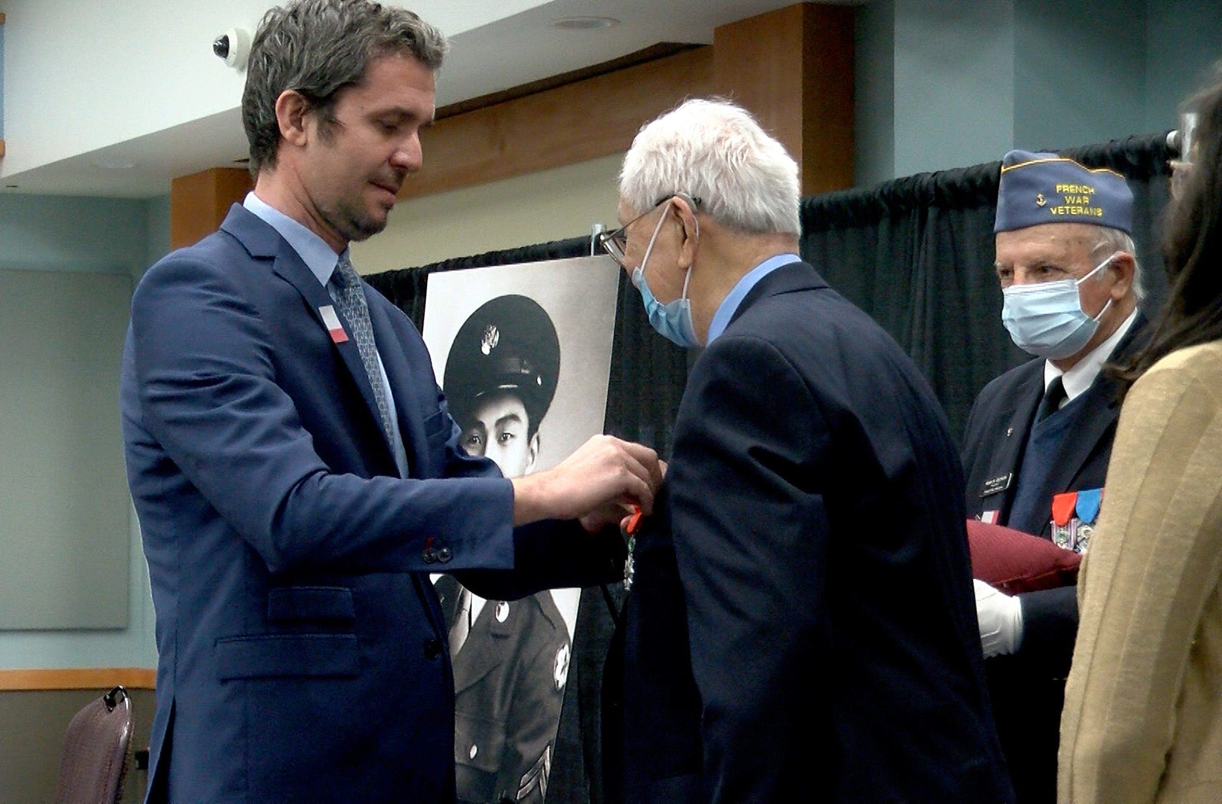 After that ceremony, the CGM Recognition Committee told veterans who had served in France that they could be eligible for the French Legion of Honor Award. And this month, French Consul General Jeremie Robert named Chan a Knight in the Order of the Legion of Honor. Monmouth County Veterans Services hosted the ceremony at Brookdale College.