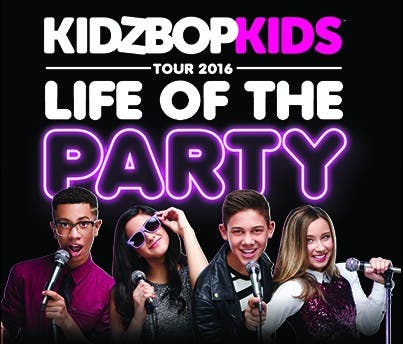 The KIDZ BOP Kids – Ashlynn, Bredia, Grant, and Matt – sing on the best-selling KIDZ BOP albums, star in national KIDZ BOP TV commercials and music videos, and host KIDZ BOP Radio on Sirius XM Channel 77. Last year, KIDZ BOP released the best selling children’s album of 2015. The KIDZ BOP Kids have toured the country performing kid-friendly versions of today’s biggest hits. They are hitting the road again in 2016 for the all-new Life of the Party tour, which will stop in more than 50 major cities across North America.