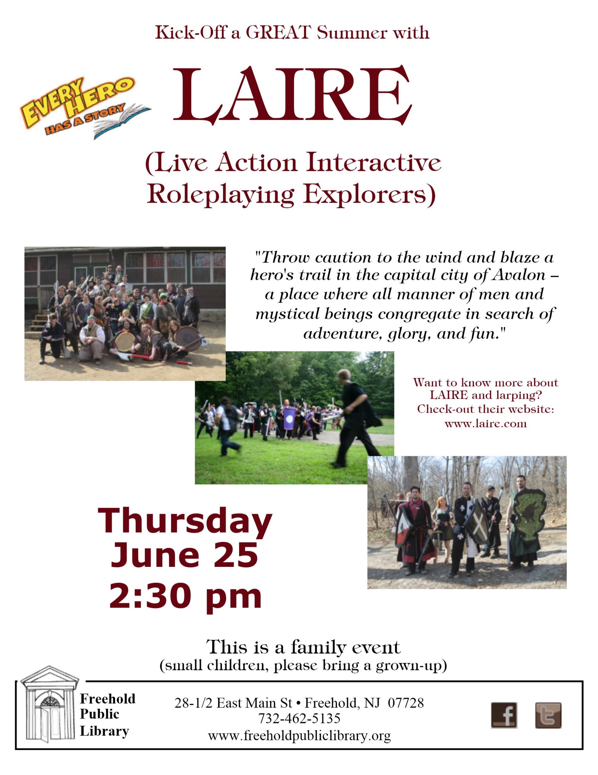 LAIRE (Live Action Interactive Roleplaying Explorers) @ Freehold Public Library