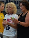Rampone received the red carpet treatment from Meridian Health (she is the spokesperson for their K. Hovnanian Children’s Hospital), complete with balloons, confetti and special guests, including Acting Governor Kim Guadagno, Monmouth University athletic director Marilyn McNeil, New York GIants Hall of Famer Harry Carson, and Judy Goldstein, who had been Rampone’s coach way back in elementary school.