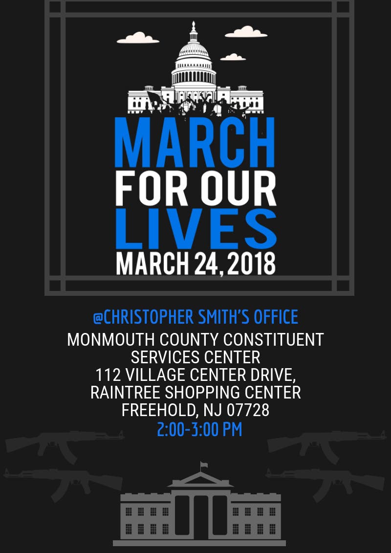 The march will be outside Rep. Chris Smith's office in Freehold, the organizers said.