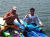 Photo #2: Second-place standup paddleboard finisher Sven Peltonen of Atlantic City, on left, congratulates Quintin Chiapperino, 19, of Saint Croix, U.S. Virgin Islands on his win in the 22.5-mile Paddle For A Cause presented by J&L Amish Depot.