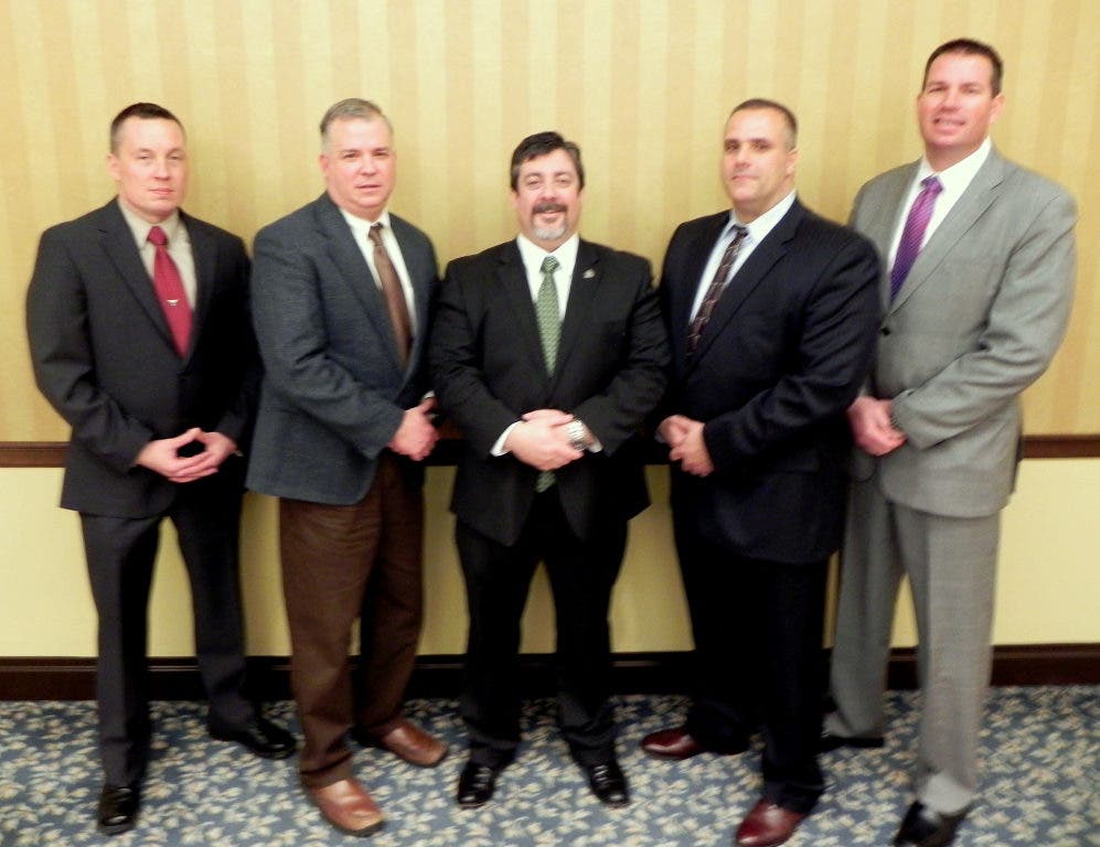 He was one of five officers sworn in to new positions at the Ram's Head Inn on Thursday.