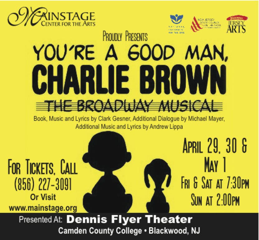 You’re a Good Man, Charlie Brown runs Friday and Saturday April 29 and 30, 7:30 p.m., and Sunday, May 1, 2 p.m. at the newly-renovated Dennis Flyer Theatre, Lincoln Hall, Camden County College, Blackwood. Ticket prices are $13 for seniors/students and $16 or $21 for adults. Special group rates are also available. To order tickets, visit www.mainstage.org, or call (856) 227-3091.