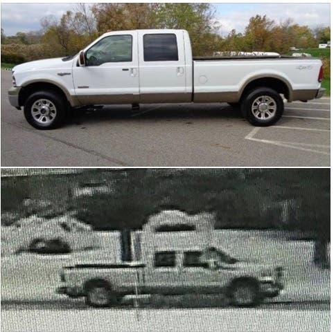 The assailant was described as an adult black man, wearing a gray vest and jeans. His vehicle was described as a white-over-tan Ford King Ranch pickup truck with a crew cab. The truck was equipped with a bed-mounted toolbox.