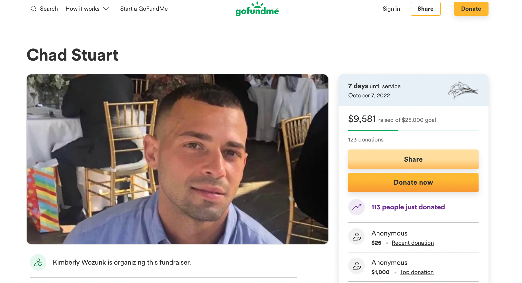 A GoFundMe for Stuart's family, legal costs, and funeral fees has raised about $9,500 as of Friday afternoon.