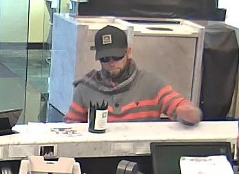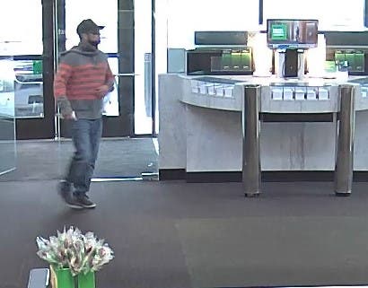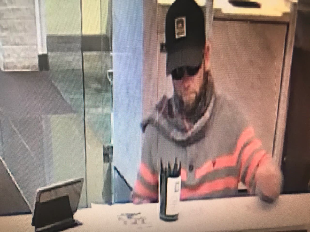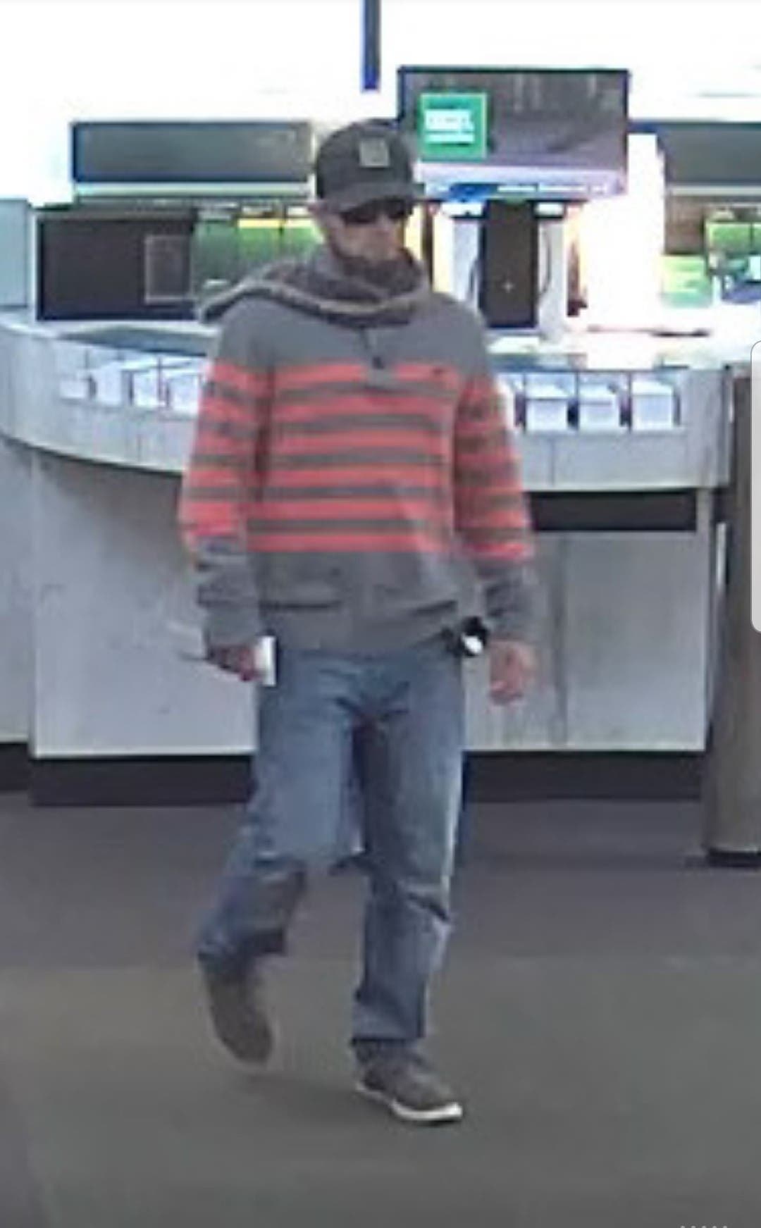 He is described as a white man who stands between 5’6” and 5’9” and weighs about 160 pounds. He was wearing a grey striped long-sleeved shirt, blue jeans, a black hat, sunglasses and a scarf. Surveillance images from the scene can be found below.