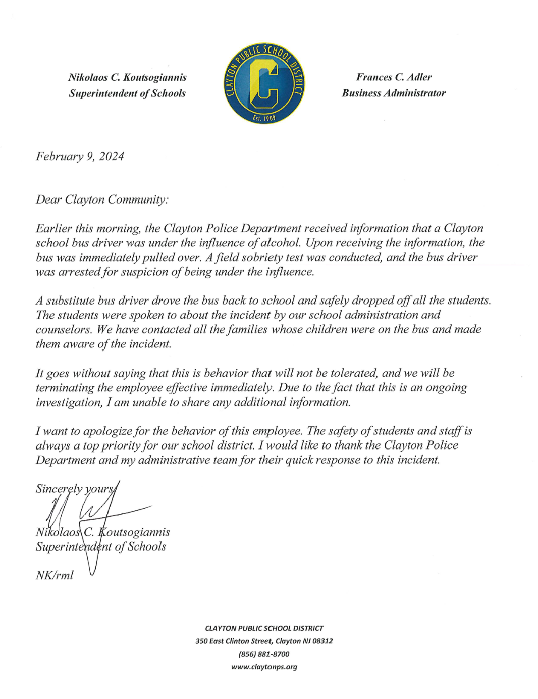 The Delsea Transportation Office found a substitute driver to safely bring the students to Herma Simmons Elementary School. School administration and counselors spoke to the children about the incident and contacted their families, according to the Clayton Public School District's superintendent.