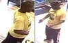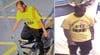 He is described as a light skinned black male or Hispanic male in his 30’s wearing a yellow “Nike 1972” t-shirt, dark sweat pants with white stripes down the legs. He appears to have light facial hair, and thinning hair on his head.