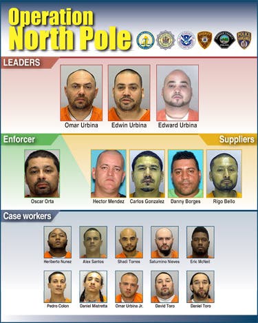 The enterprise allegedly was led by three brothers: Omar Urbina Sr., 40, of Philadelphia, Pa., Edwin Urbina, 38, of Camden, and Edward Urbina, 35, of Camden.