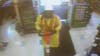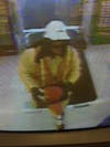 The suspect is described as a white man who stands approximately 6’0’’ tall and weighs about 200 pounds. He was wearing a long yellow rain jacket, yellow reflective vest, hooded sweatshirt, black mask and white hardhat. The suspect was carrying an orange traffic cone during the robbery.
