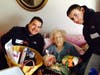 GivingThanks 1.jpg – Samaritan Board member Lee Sheilds (left) and his son Tommy (right) delivered a basket to former Chemistry teacher Theresa Gabarino (center) who proudly declared she was 102-years young.