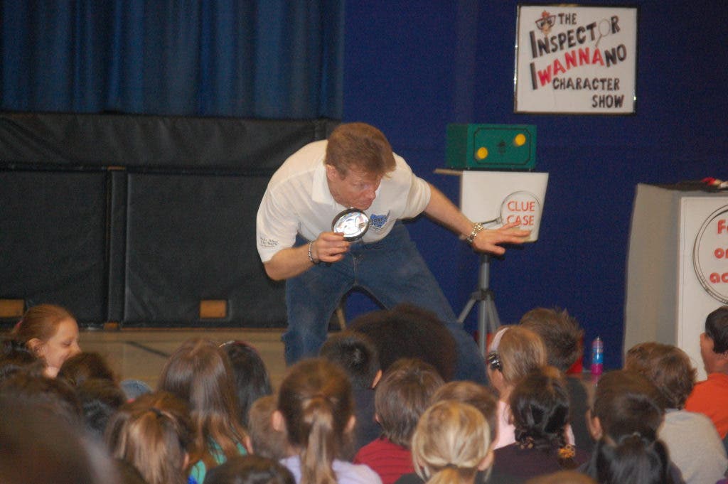 The students took part in this interactive and entertaining program called “Inspector Iwannano Character Show” which was presented by Derek McDonald of Mobile Ed Productions, Inc. who played the role of the inspector. He entertained the youngsters with silly voices and silly props, games, and even some magic all which had vital character lessons interjected within.