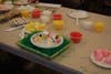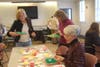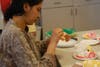Once again the women of the Crafts to Share Club joined the teen club at the to make a shared craft - this time they got their hands into marshmallow and candied goodness which they assembled into barnyard animals to make springtime centerpieces. Kids and adults worked together on their centerpieces assembling colored marshmallows with fluff adding on icing, gum drops and coconut to make little pigs, chickens and sheeps.