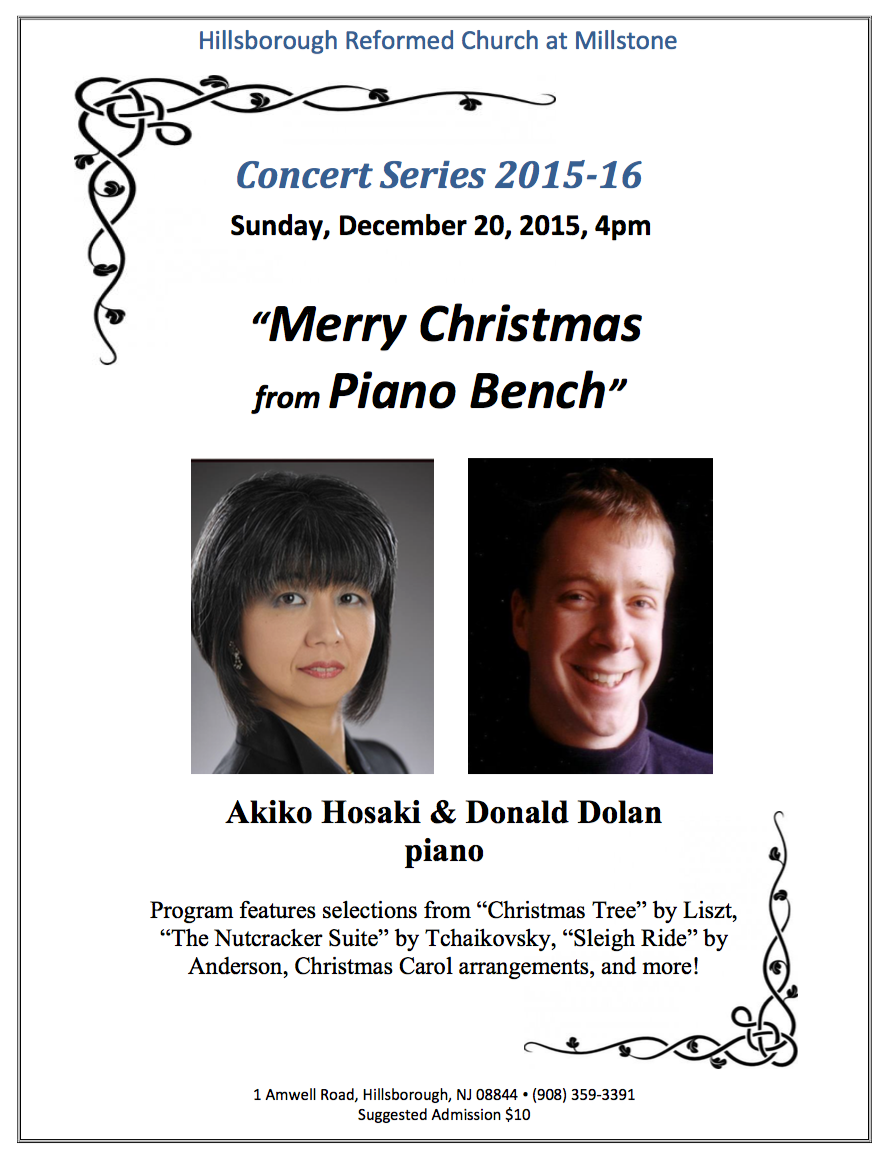 Christmas Piano Concert, Dec. 20 4 PM at Hillsborough Reformed Church