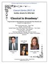 The "Classical to Broadway" program features Opera/Operetta Arias, songs from Musicals, and crossover art songs.