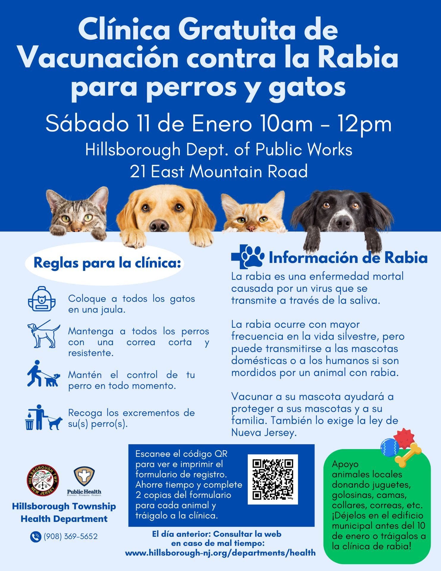 HILLSBOROUGH, NJ — The Hillsborough Health Department is hosting a free rabies clinic on Saturday at the Department of Public Works.