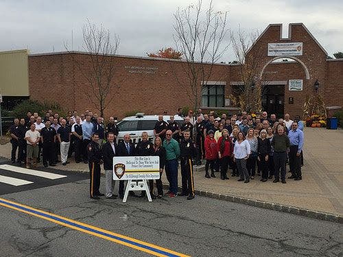 "This 'Thin Blue Line' will serve as a reminder to all residents and visitors to the Hillsborough Municipal Complex that our Police Officers, who are called to our aid, are a vital part of our community. It is a symbol of our appreciation and thanks to them for their service to our community," stated Hillsborough Township Mayor Frank DelCore during the ceremony.