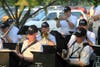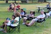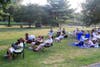 The crowd tried to beat the heat by staying in the shade during John Nobile's SummerSwing Orchestra performance Thursday night.