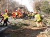 A crew of nine workers from Hillsborough's Department of Public Works spent most of Thursday cutting and grinding their way through a half dozen trees on several Long Hill Road properties that were toppled during Superstorm Sandy.