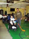 Deremer also developed a series of pulleys and ropes so individuals can pull themselves up and move across the room. A specially designed “sleeve” helps clients hold such sports equipment as a hockey stick.
