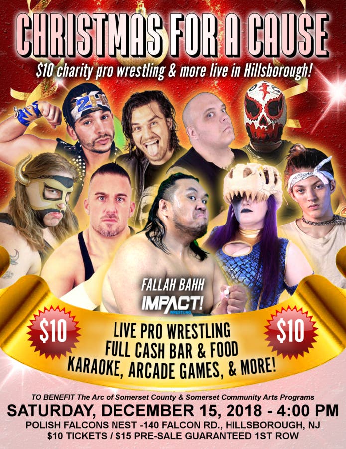 On Saturday, December 15, 2018, a mix of pro wrestlers, vocal artists, karaoke DJs, bartenders and cooks will combine to present "Christmas for a Cause" at the Polish Falcons Nest in Hillsborough Township, New Jersey.