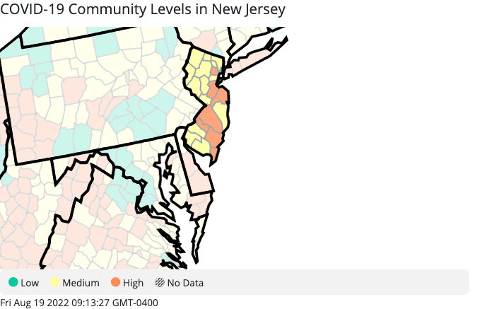The agency took 10 New Jersey counties out of the high category this week. Here are the changes from the map issued Aug. 11: