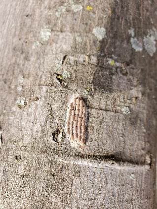 Residents and visitors are advised to keep an eye out for spotted lanternflies and their egg masses and kill them on sight. Destroying spotted lanternfly egg masses before they hatch is the best way to limit their spread. Eggs can be laid on any flat hard surface including metal, wood, and plastic. Egg masses are commonly found on fence posts, telephone poles, lawn furniture, and the underside of tree branches. Egg laying begins in September and continues through November or until the first freeze.