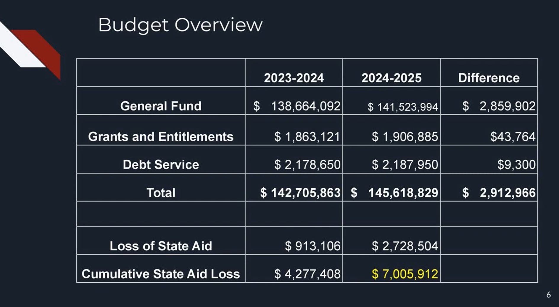 The proposed budget of $145,618,829 for the 2024-25 school year is an increase of just over 2 percent or roughly $2.9 million over the 2023-24 budget of $142,705,863.