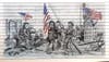 "I bought a 40 x 60 canvass and started to sketch. Taking hints and advice from my husband Greg and friends, as to placement and content, the picture began to emerge. A week long drawing frenzy began. I took the Statue of Liberty, the image of Iwo Jima, a policeman, the three firefighters and three American flags to display patriotism."