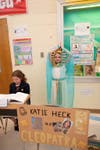 For student Katie Heck, who embodied Cleopatra, her favorite part was finding the props. Her favorite prop was a piece of artwork done on papyrus that she got from her mom, Wendy, an art teacher at a neighboring school who happens to teach a lesson on Egyptian art. Katie chose Cleopatra because she is fascinated by ancient Egyptian things, she said.