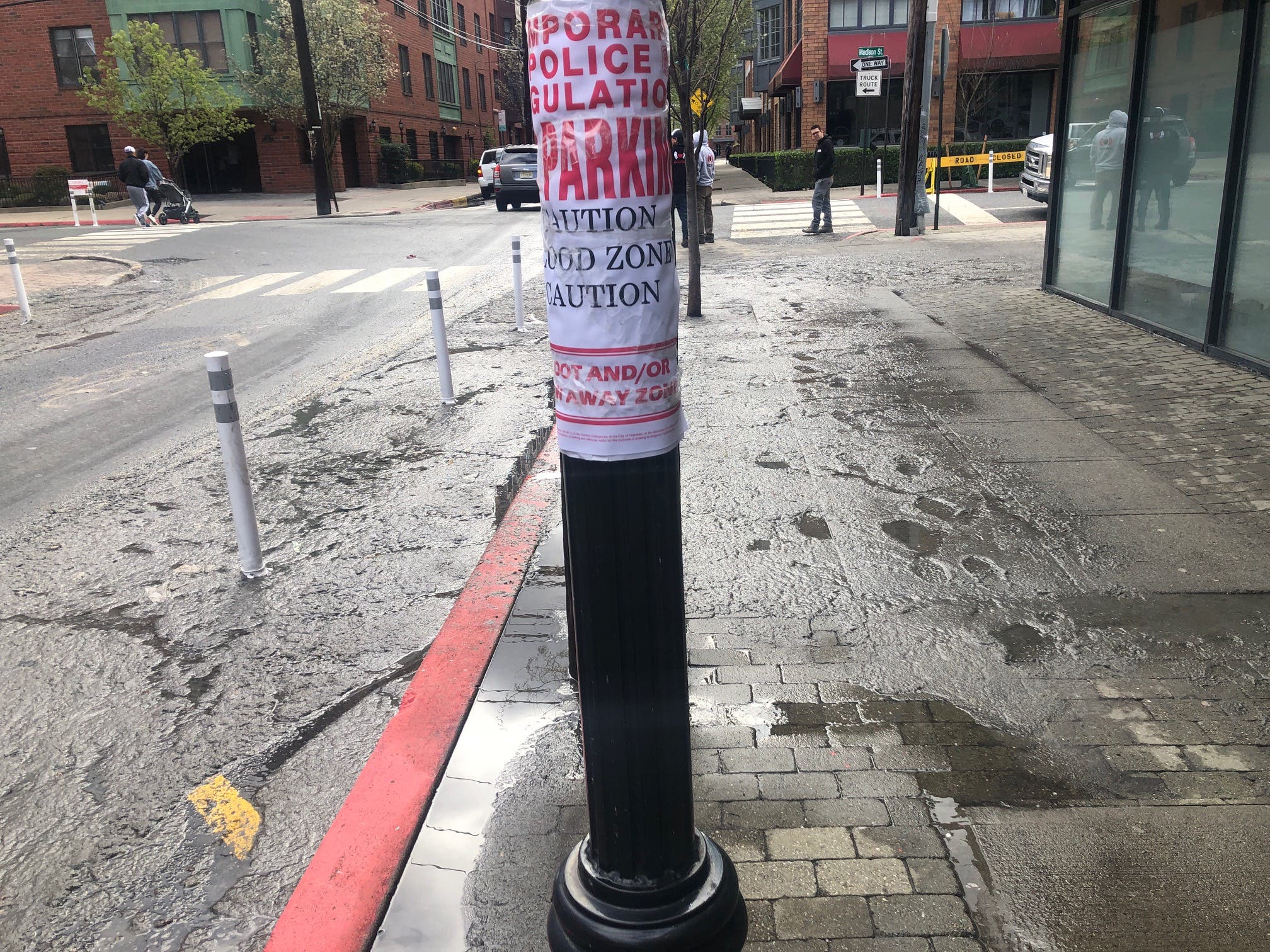 "Bus route 85 is on detour in Hoboken. Paterson Ave between Paterson Plank Road and Monroe Street is closed due to flooding," NJ Transit reported Tuesday. The area is near the city's southwest border with Jersey City.