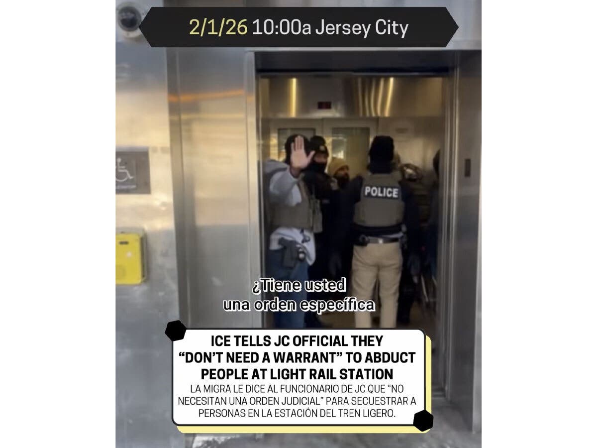 A second video, posted to social media later on Sunday by Jersey City Heights Councilman Jake Ephros, shows Ephros asking a group of agents in the elevator if they have warrants, to which one replies, "We don't need a warrant, bro. Stop getting that in your head."