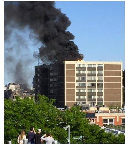Rooftop fire at the senior citizen residence at 1st and Adams Streets in Hoboken.